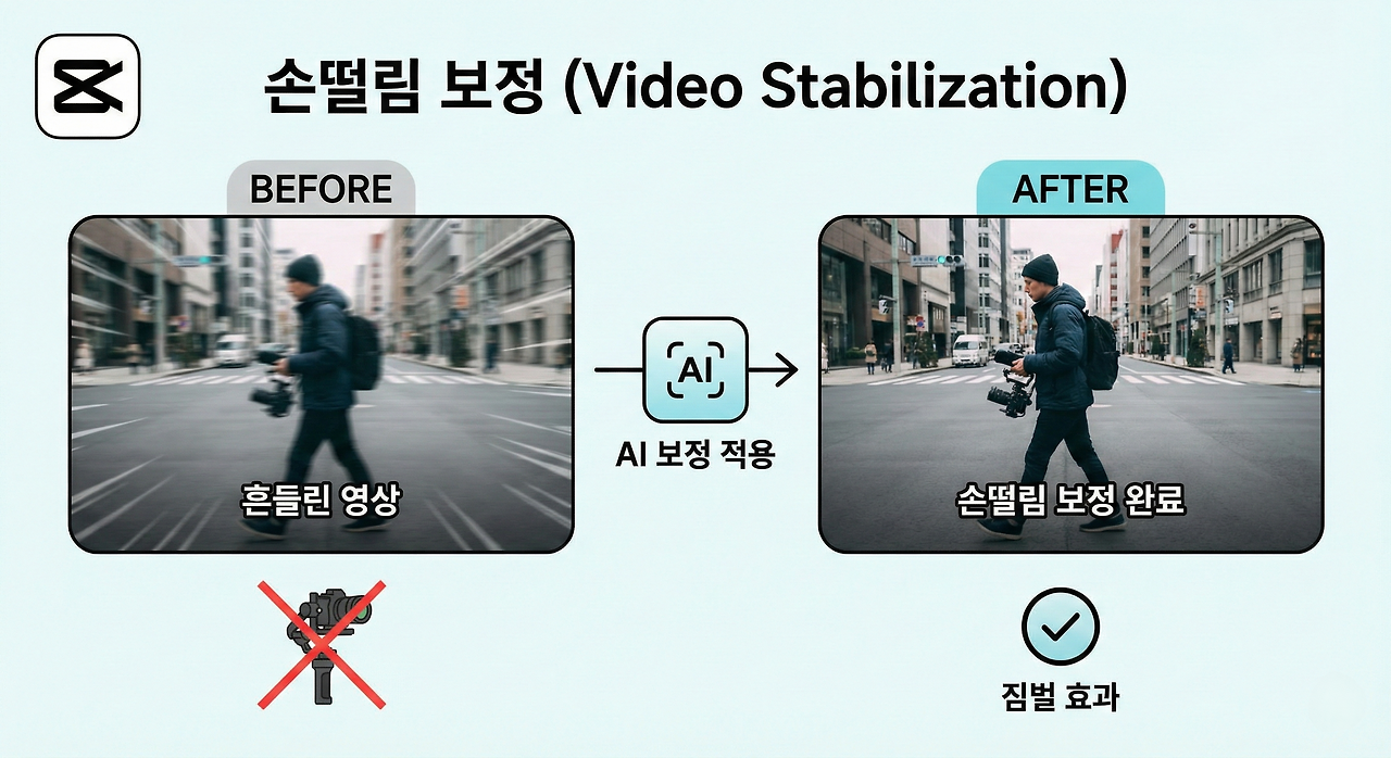 📹 손떨림 보정: 걸으면서 찍어 흔들린 브이로그 영상도, 고가 장비(짐벌)를 쓴 것처럼 부드럽게 잡아줍니다.