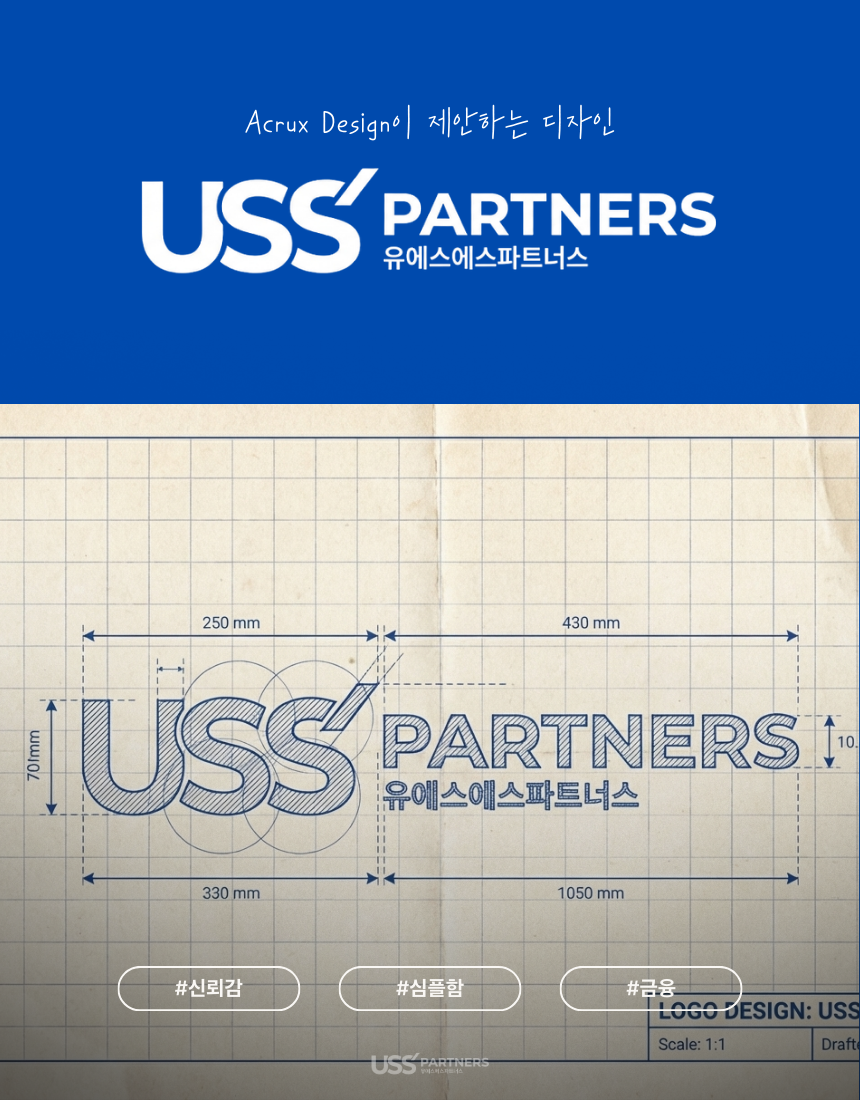 신뢰와 권위의 컬러: 깊고 선명한 블루 배경을 사용하여 금융, 컨설팅, 협력 관계에서 가장 중요한 요소인 안정감과 전문적인 신뢰를 시각화했습니다.