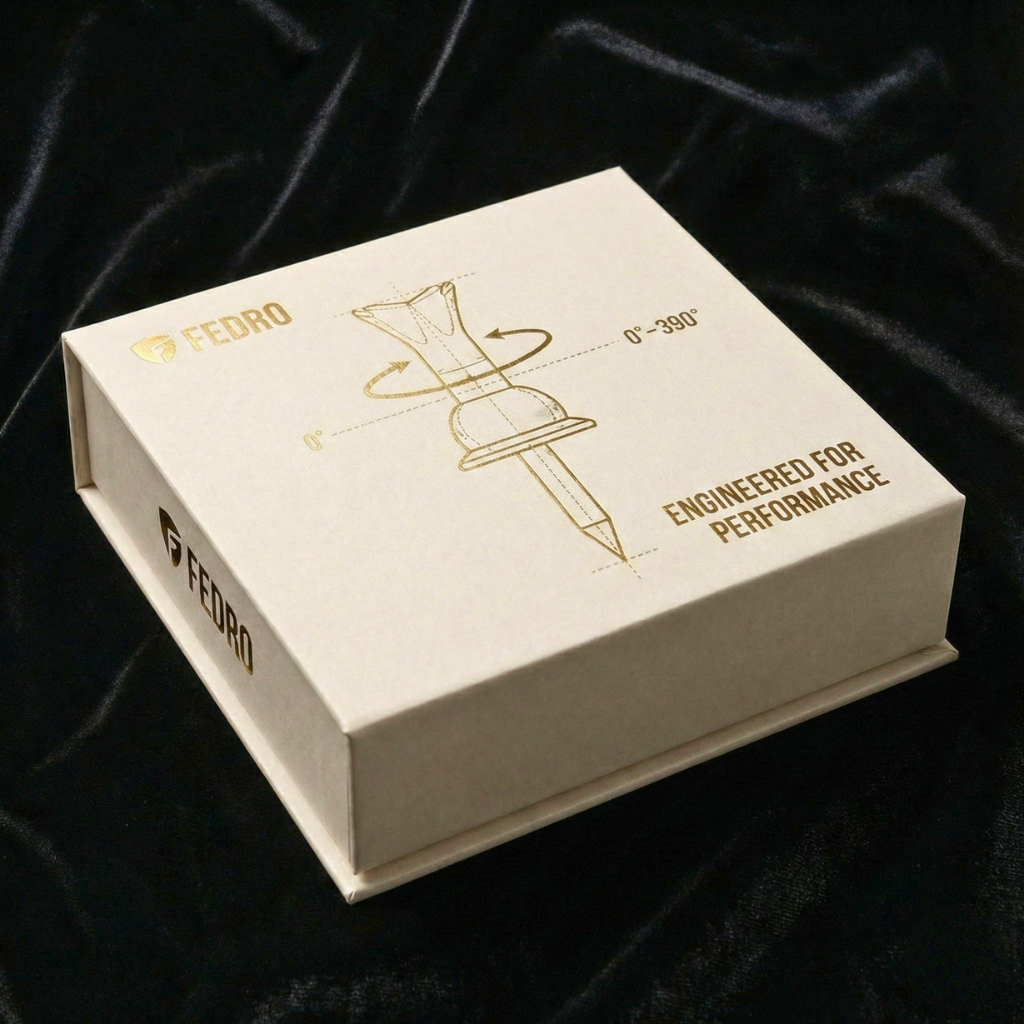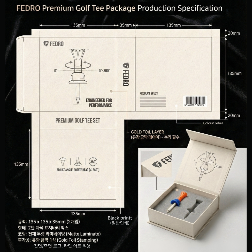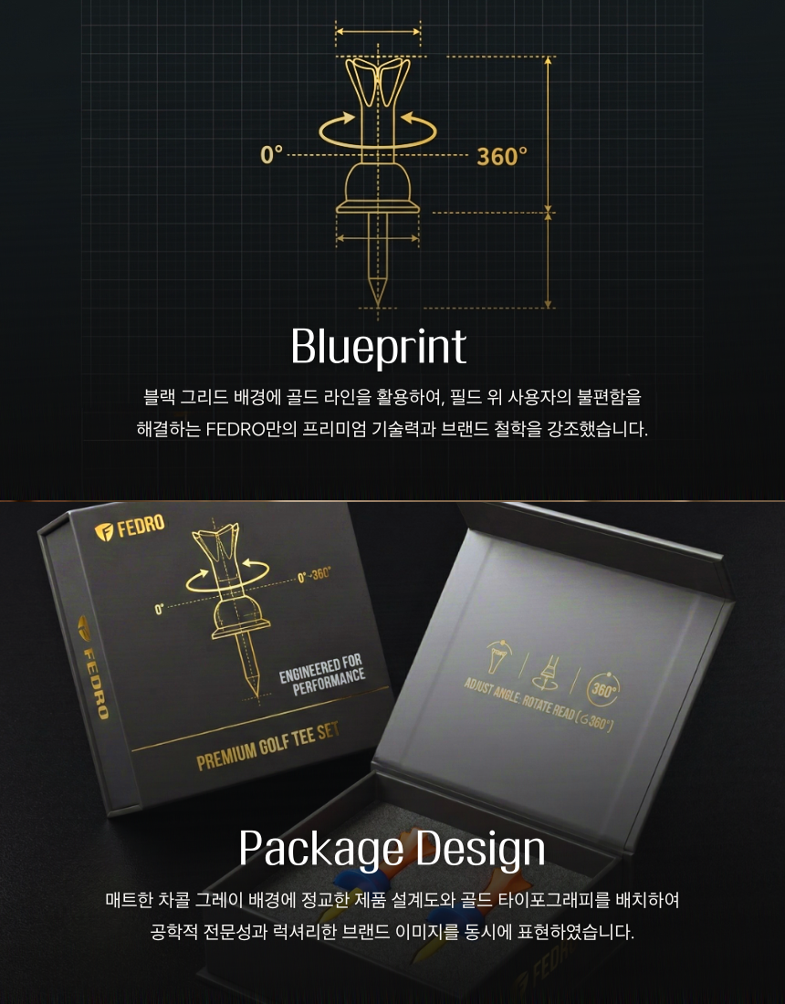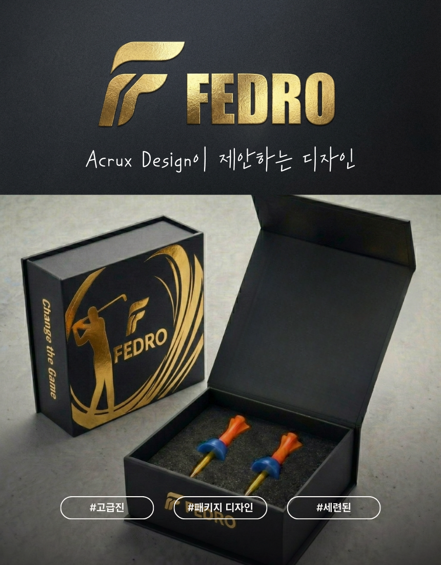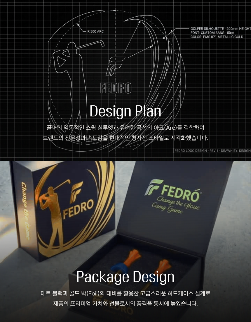상단의 골드 로고와 하단의 정갈한 타이포그래피 조화는 FEDRO가 지향하는 프리미엄 퍼포먼스 브랜드로서의 격조 있는 분위기를 완성합니다.