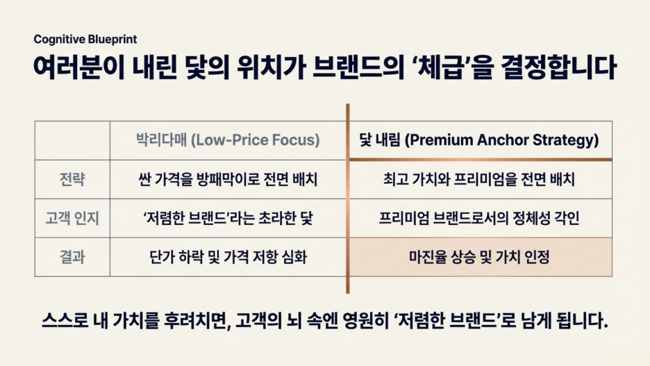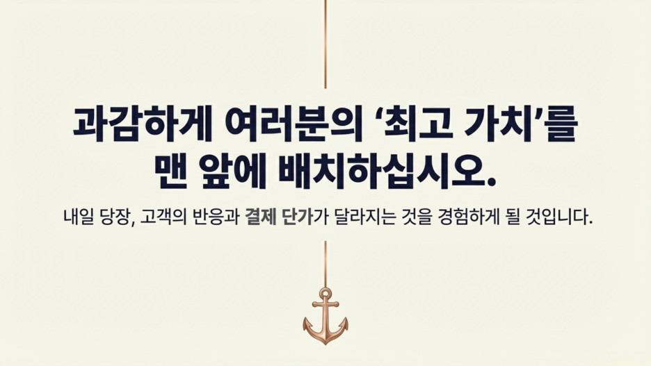 높은 닻을 내린다는 것은 곧 "우리 브랜드가 그만큼의 압도적인 가치를 제공할 자신이 있다"는 당당한 선언과도 같습니다.
