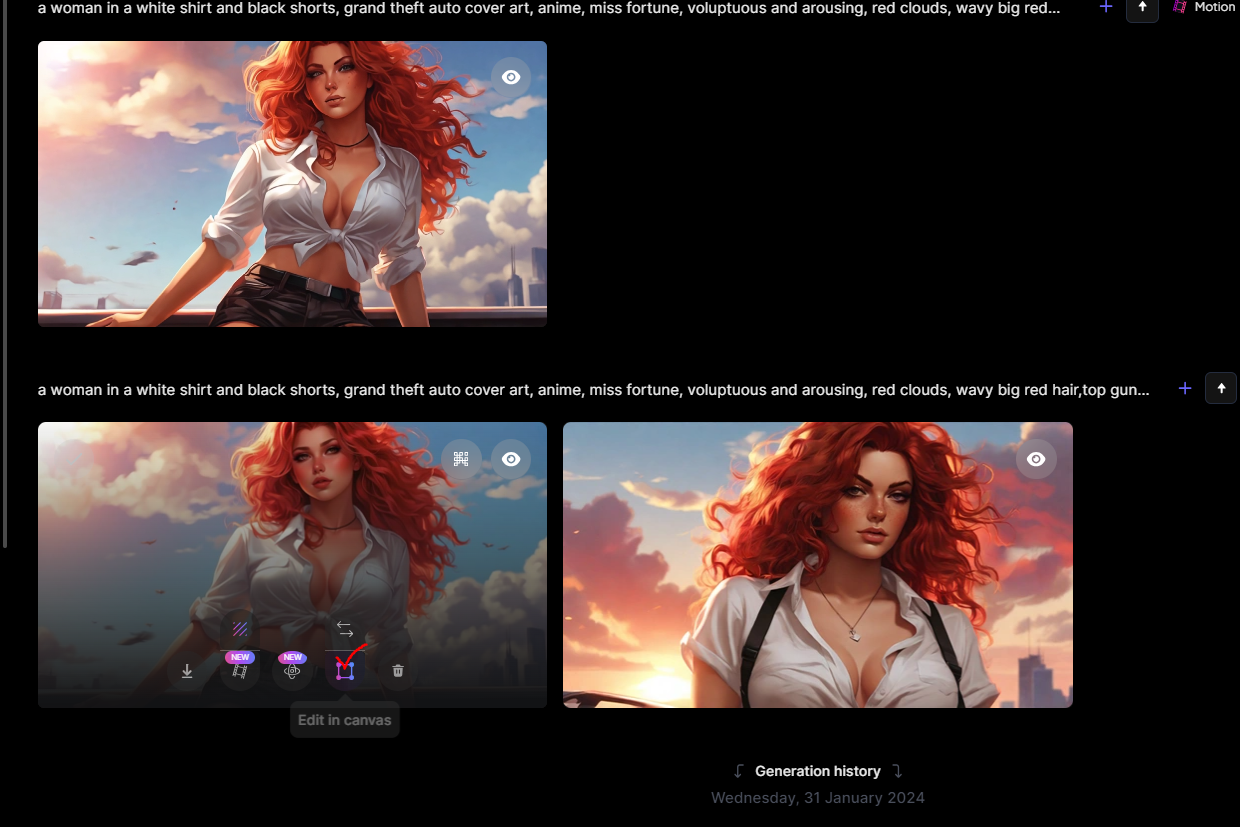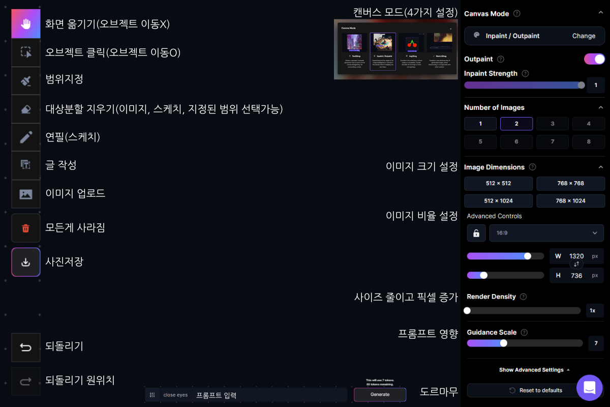 마치 칸바, 미리캔버스 편집툴같기도 하고 포토샵같기도 한 이 기능은 leonardo ai자체 편집기능입니다.