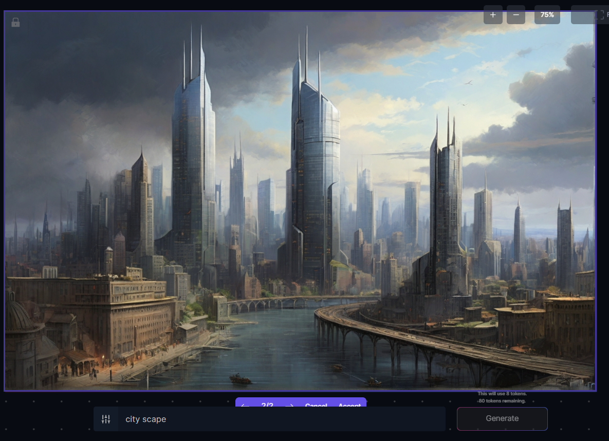 1) 프롬프트 이미지 생성 > cityscape를 입력해 보겠습니다.