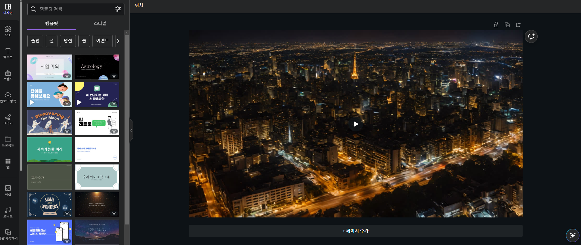 이렇게 3가지 기능에 템플릿활용만 잘해도 칸바의 대다수 기능들은 사용하고 있다고 볼 수 있겠습니다.