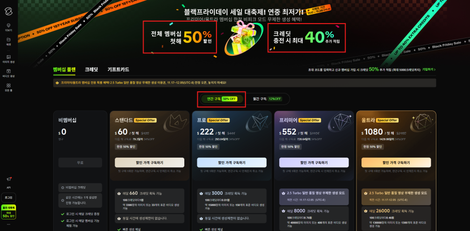 💡 한 줄 요약: 1년 치를 한 번에 결제하면 원래 가격의 절반으로 최고 성능의 영상 AI를