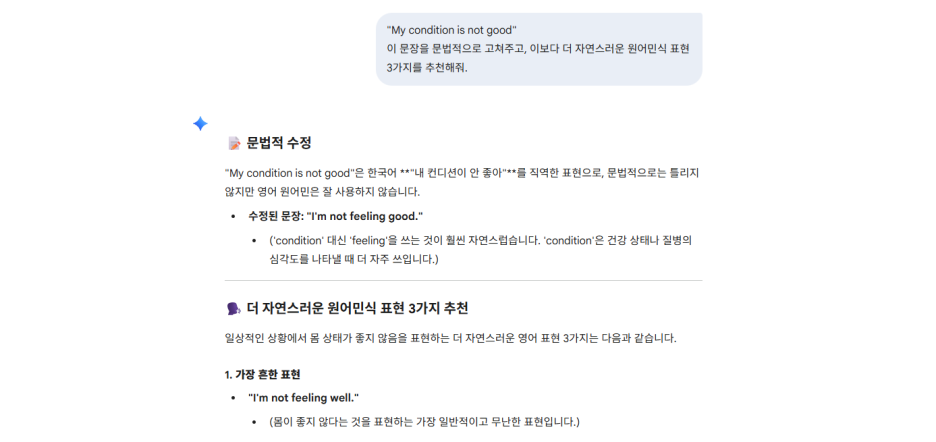 더 원어민스러운 표현 3가지만 추천해줘"라고 개인 과외 선생님처럼 써보세요.