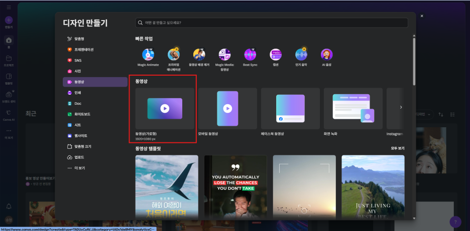 STEP 1. 캔바에서 '동영상' 캔버스 열기