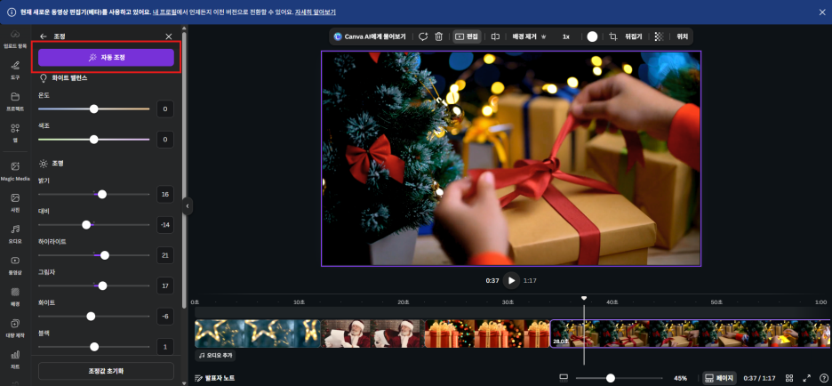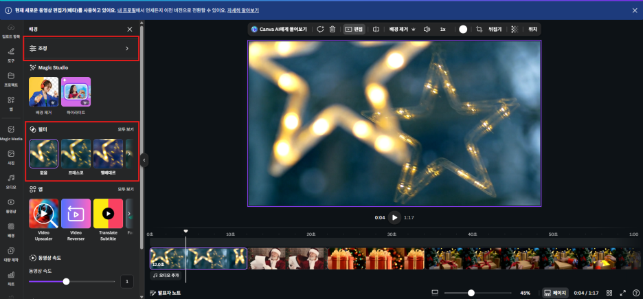 캔바에는 포토샵 못지않은 보정 기능이 있습니다.