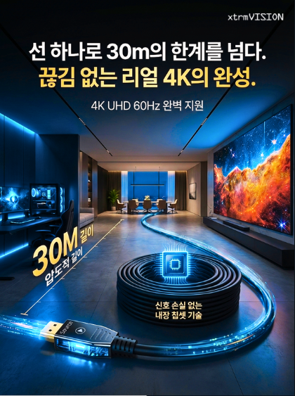 30m 길이의 케이블은 벽이나 천장을 통과하는 매립 시공이 많습니다.