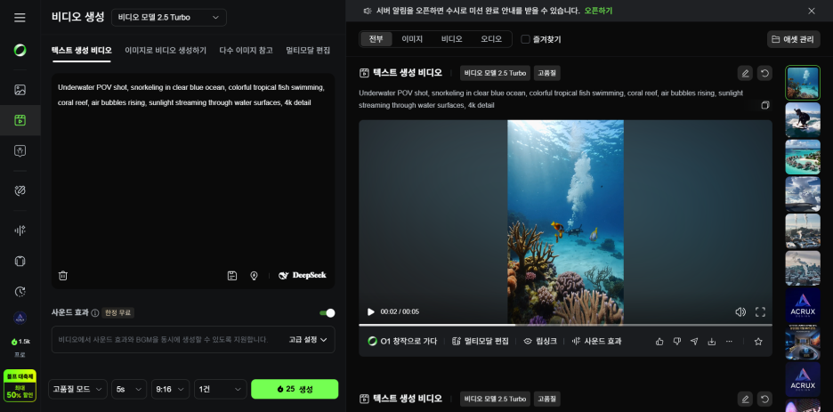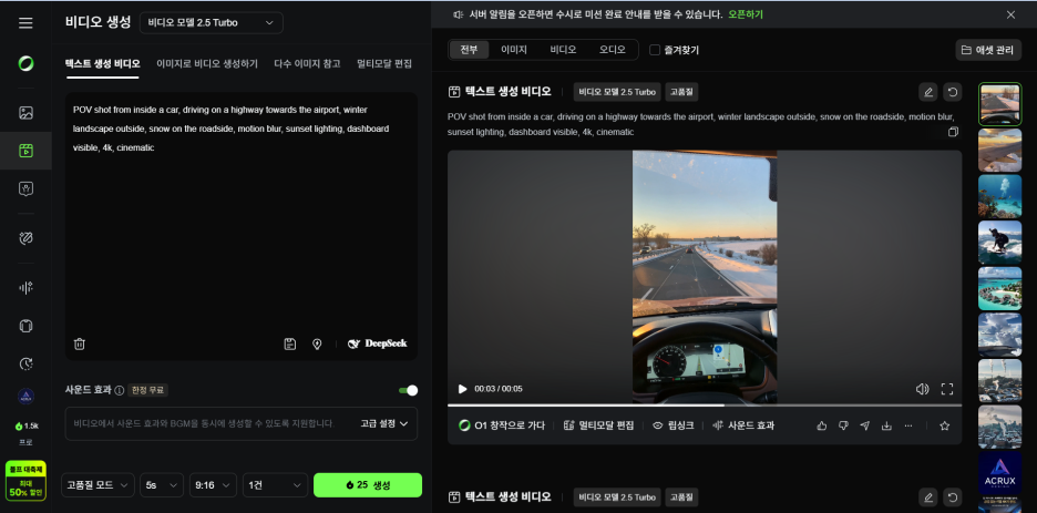 AI가 생성한 영상은 앞뒤가 부자연스러울 수 있습니다.