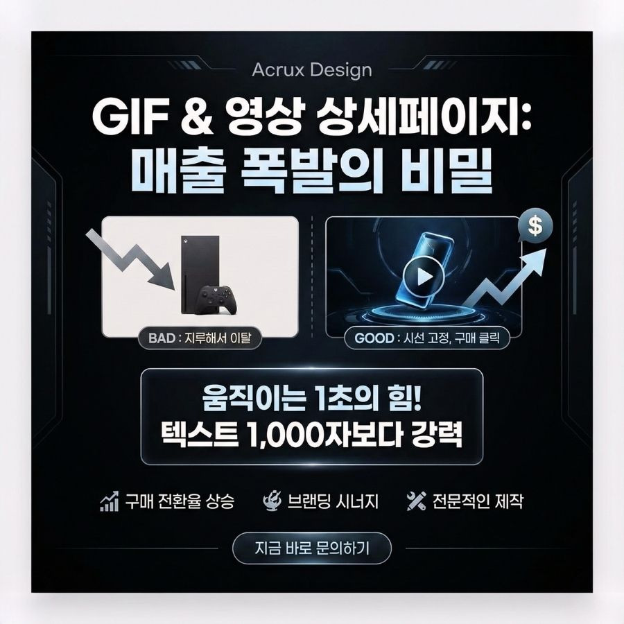 상세페이지에 GIF나 영상이 섞여 있으면, 고객은 그 움직임을 끝까지 보기 위해 스크롤을 멈춥니다.